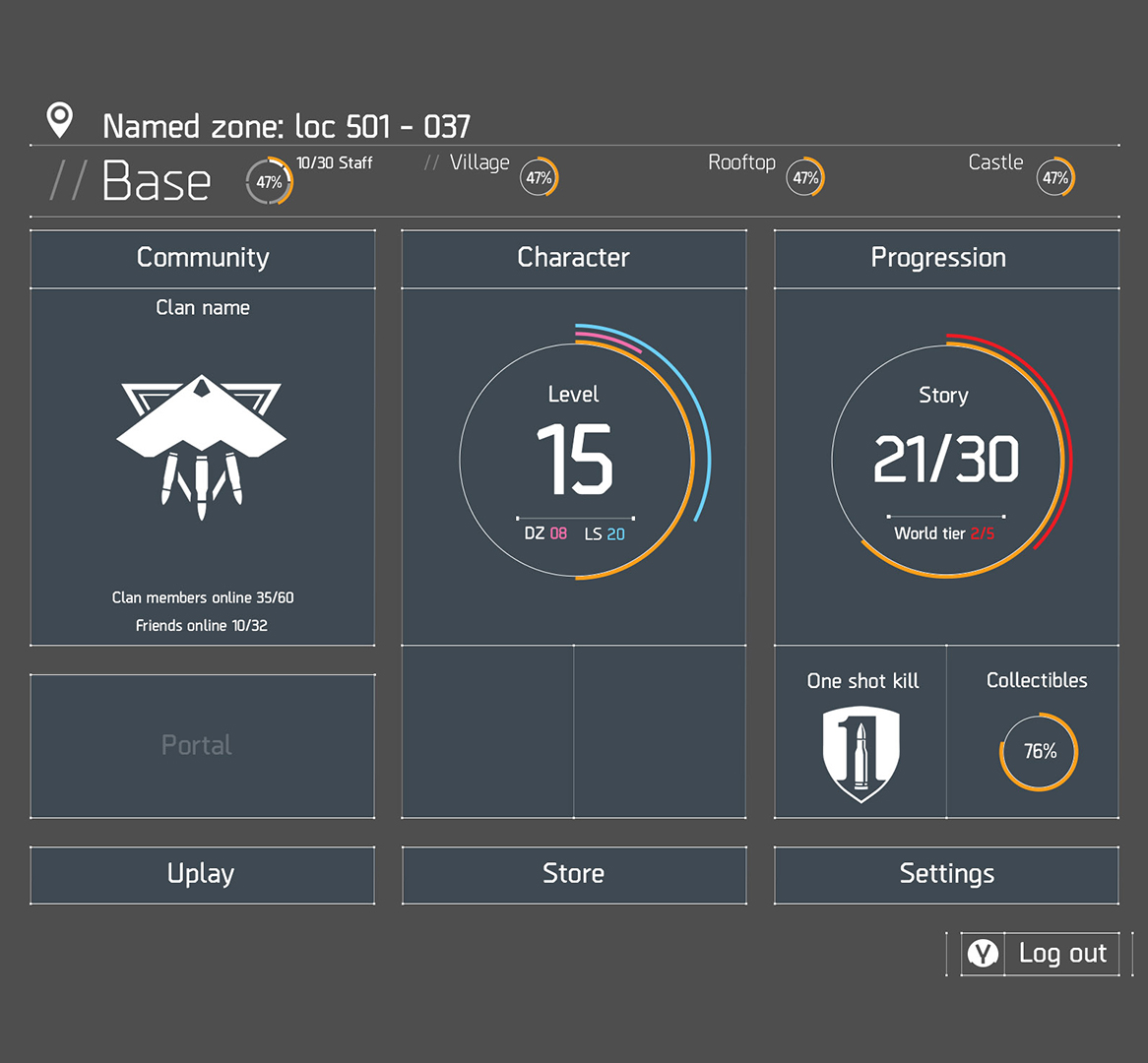 - Main pillar : In and out Navigation - No hidden options : Within a menu system, the player should be presented all possible selecion options clearly