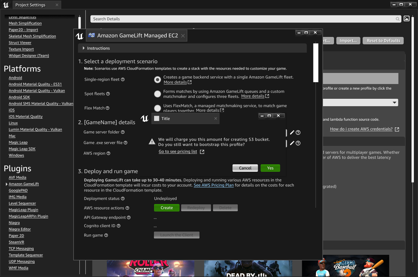 Customers download and extract the Amazon GameLift Plugin installation package, open Unreal Engine Project and enable it in the Unreal Engine project.