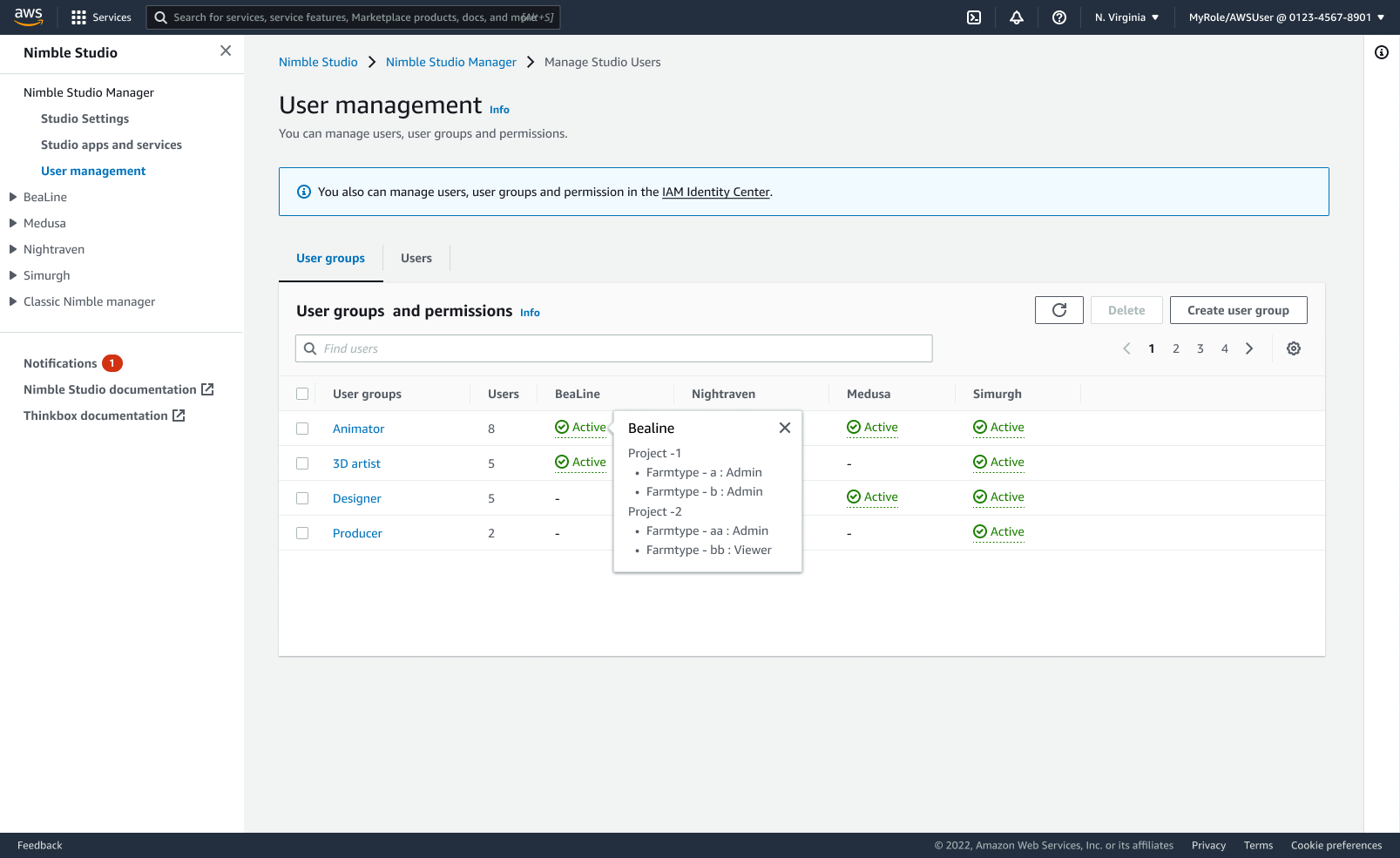 • NimbleStudio_AdminRole can assign user to launch profiles