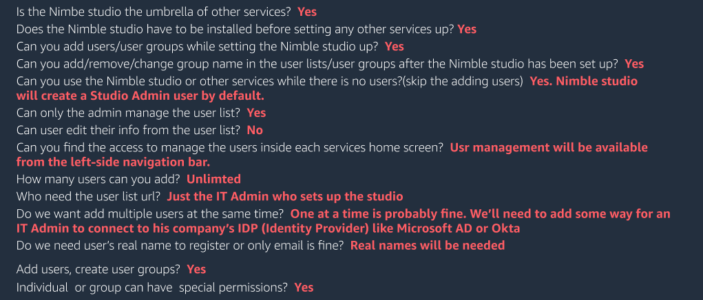 - Neither can access the AWS console — the only person with access to the AWS Console is the IT Admin who sets up the studio